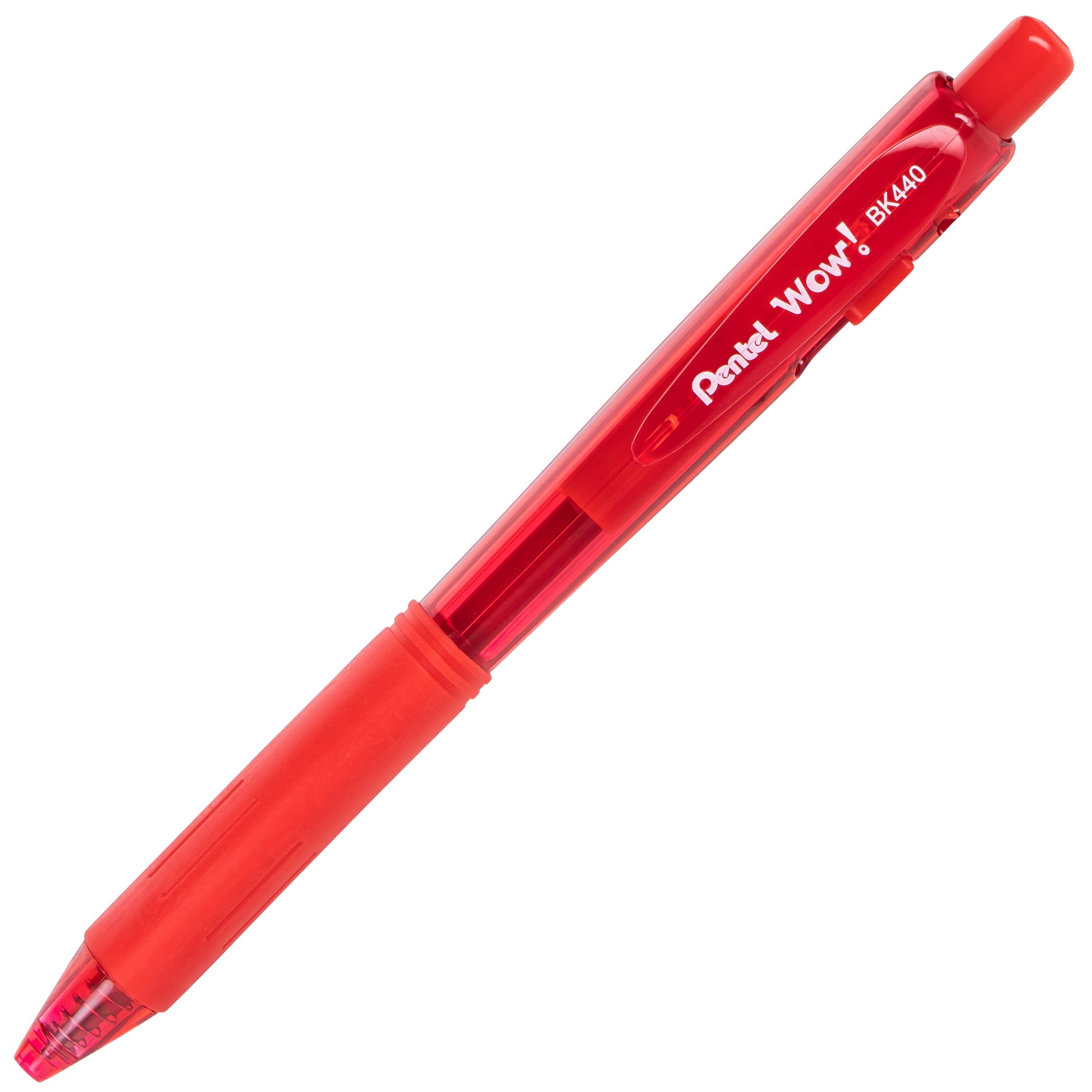 Wow! Retractable Ballpoint Pen, (1.0mm) Medium Line, NEW Ink, Red Ink (BK440-B)