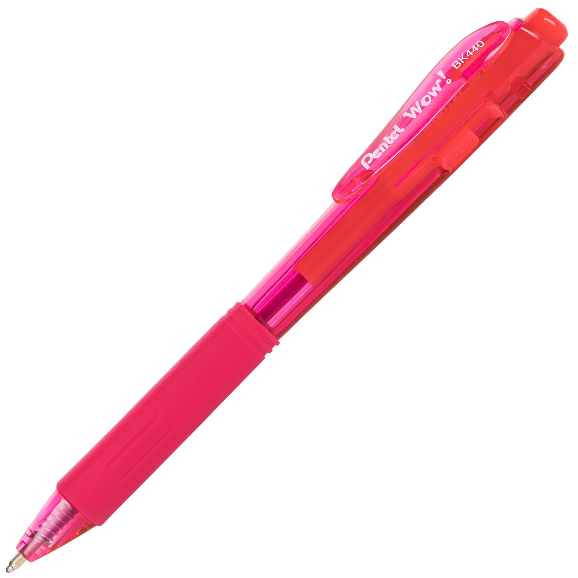 Wow! Retractable Ballpoint Pen, (1.0mm) Medium Line, NEW Ink, Pink Ink (BK440-P)
