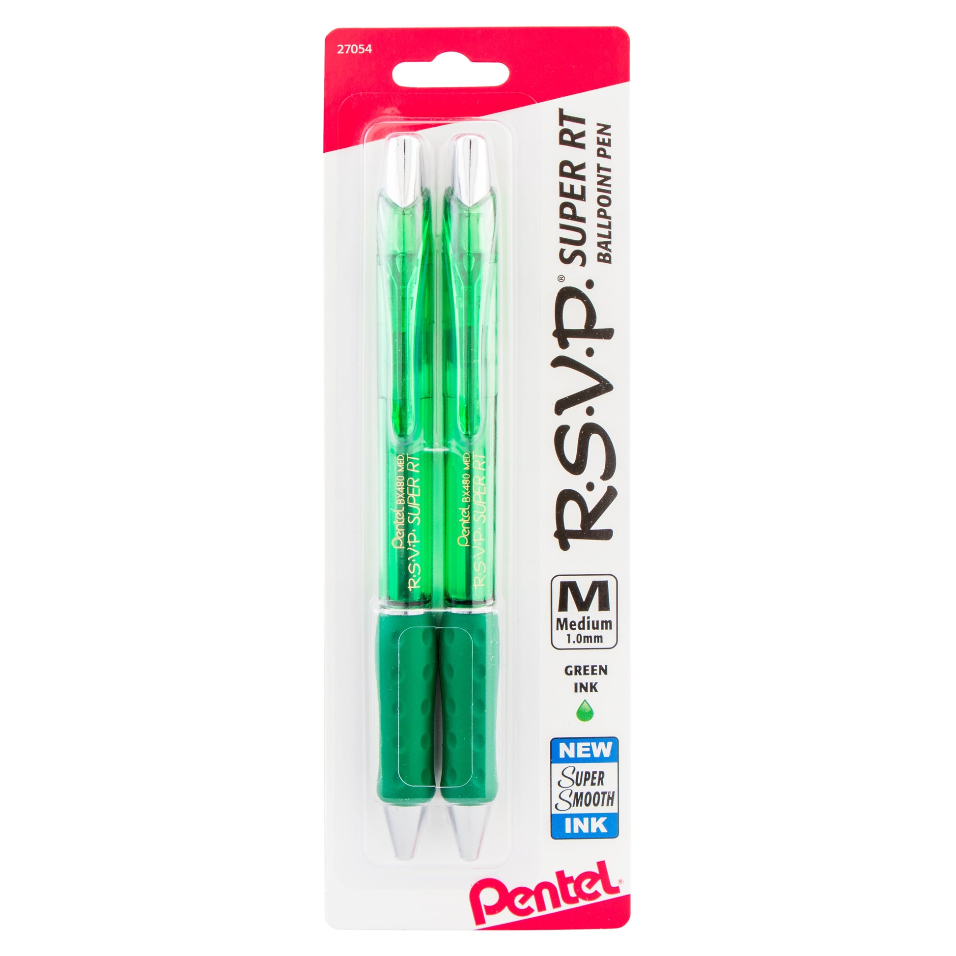 RSVP Super RT Ballpoint Pen, (1.0mm) Medium Line, Green Ink, 2-Pk (BX480BP2D)