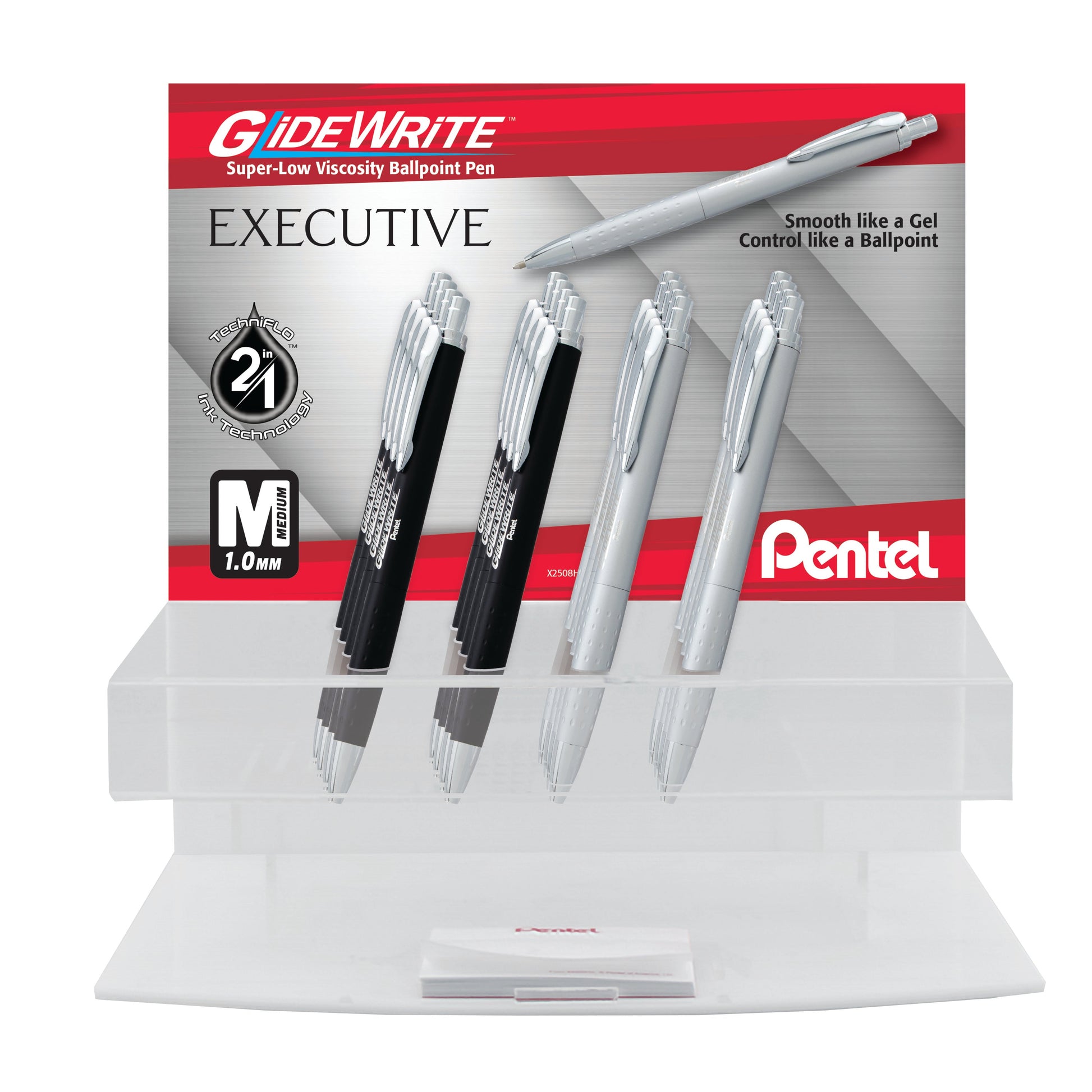 GlideWrite Executive Ballpoint Pen, (1.0mm) Med. Line, Assorted Barrels (10 matte silver, 10 matte black), Black Ink, Open Stock Display, 20 pcs. (BX970-20)