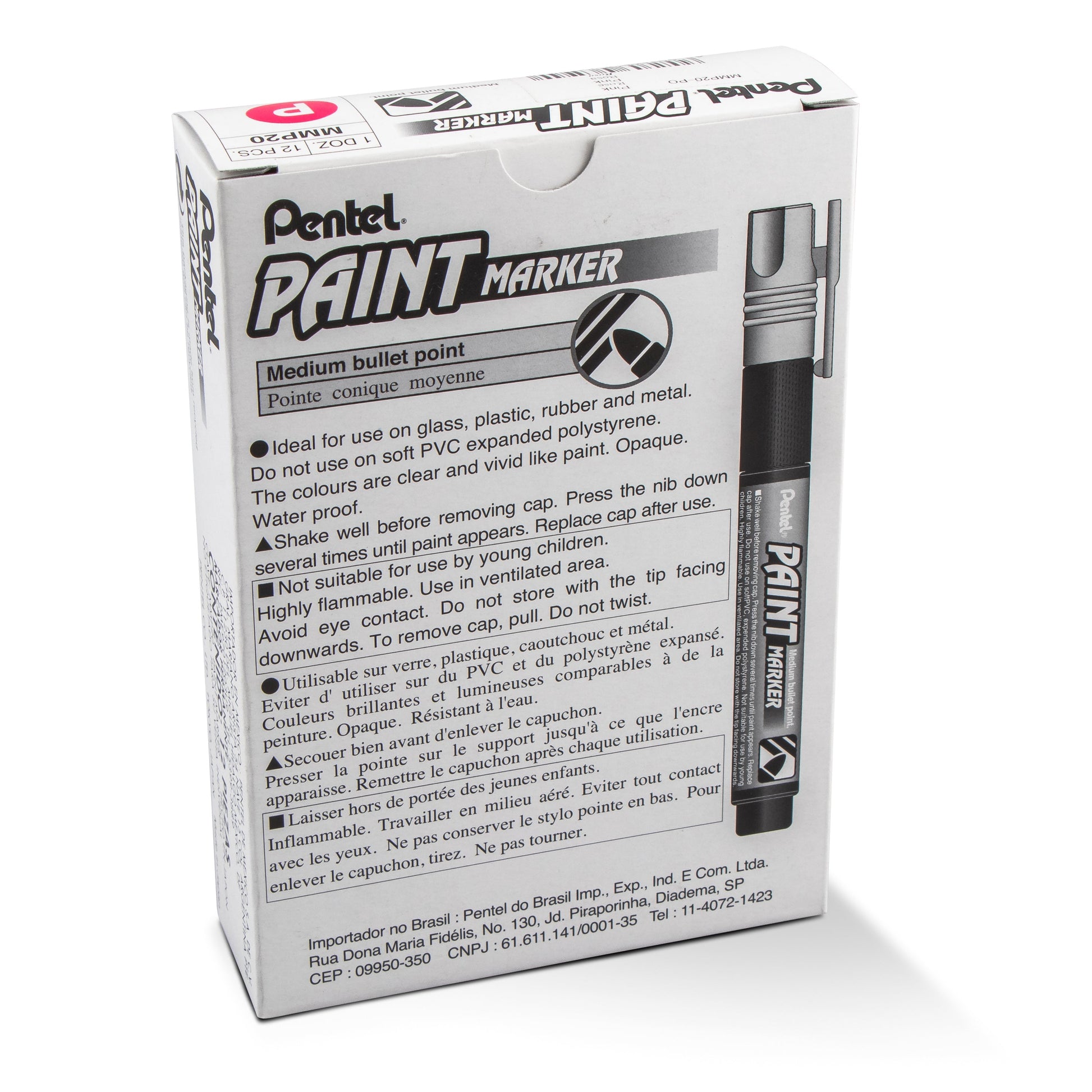 Pentel® Paint Markers are perfect for writing and drawing on a variety of surfaces including thick paper, metal, glass, ceramic, plastic and rubber. Great for mechanics, metal and wood working, plumbers, construction and artists. Opaque paint marker ink is permanent, waterproof and produces bright vivid colors that look and feel like paint. 4.6mm medium bullet tip writes a bold and clear 3.mm line. Available in 15 vibrant colors. Backed by a Limited Lifetime Warranty