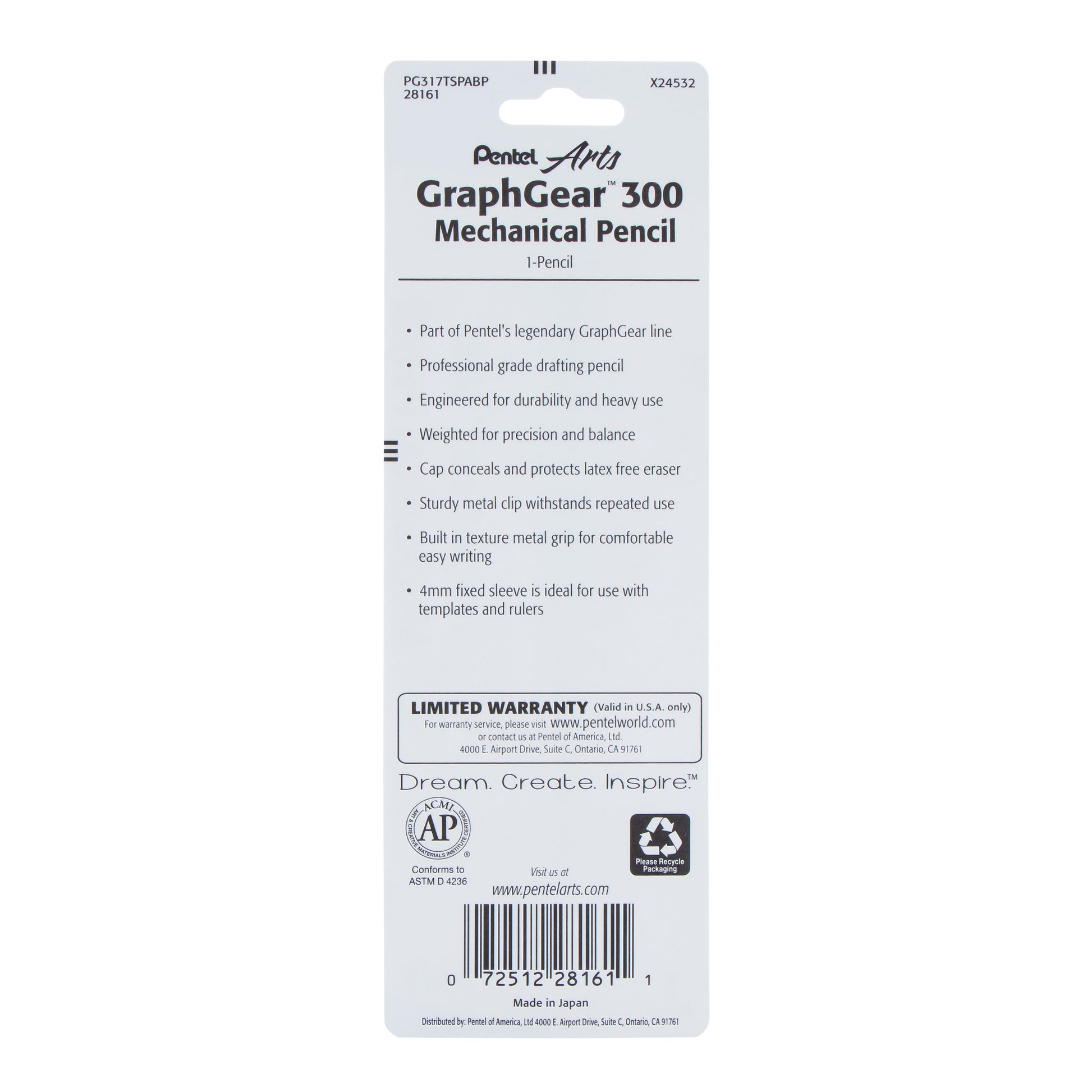 Pentel Arts GraphGear 300 Mechanical Pencil, (0.5mm) Fine line, 1-Pack, Sky Blue Barrel (PG317TSPABP)