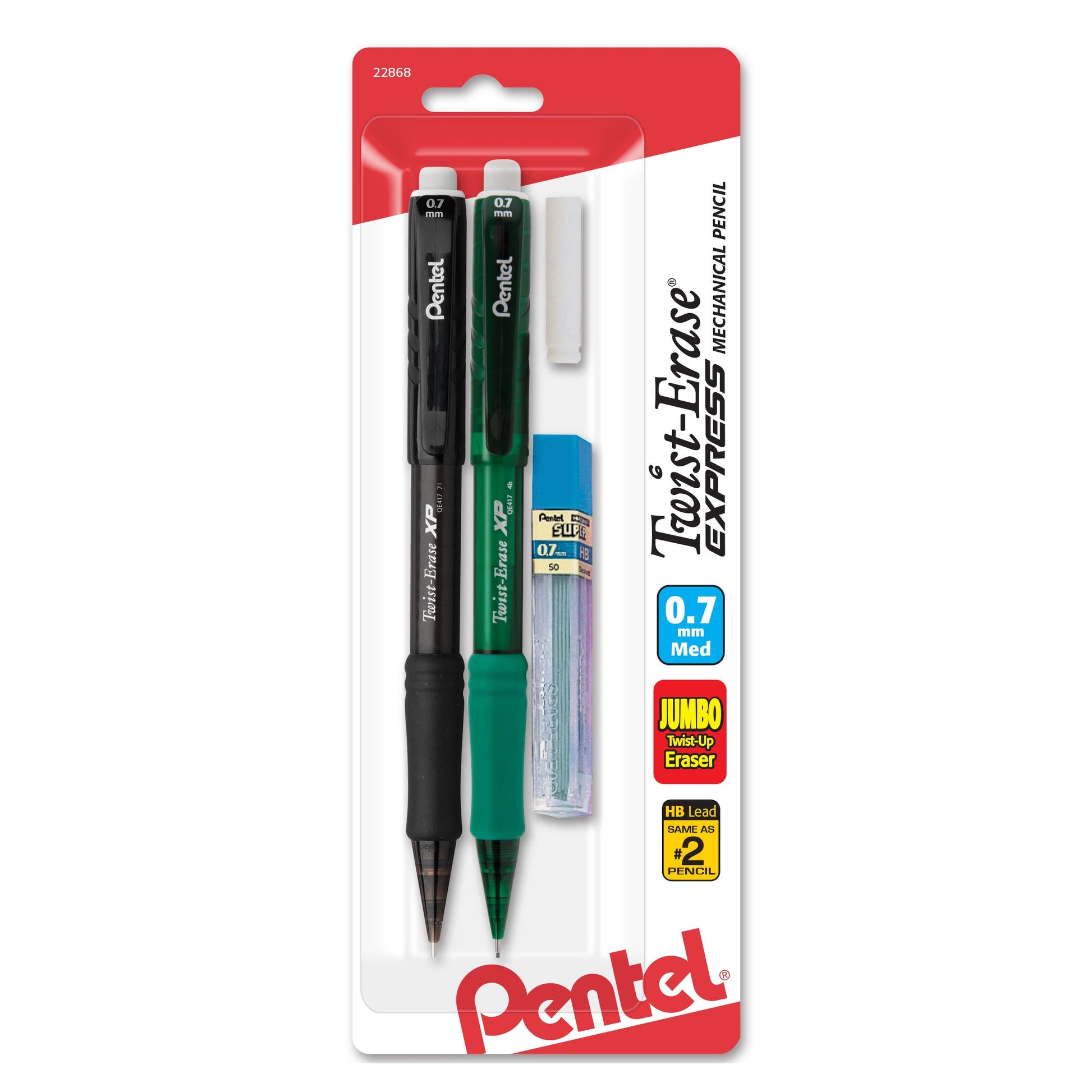 Twist-Erase EXPRESS Mechanical Pencil (0.7mm) Assorted Barrel Colors with Lead and eraser 2-Pk (QE417LEBP2)