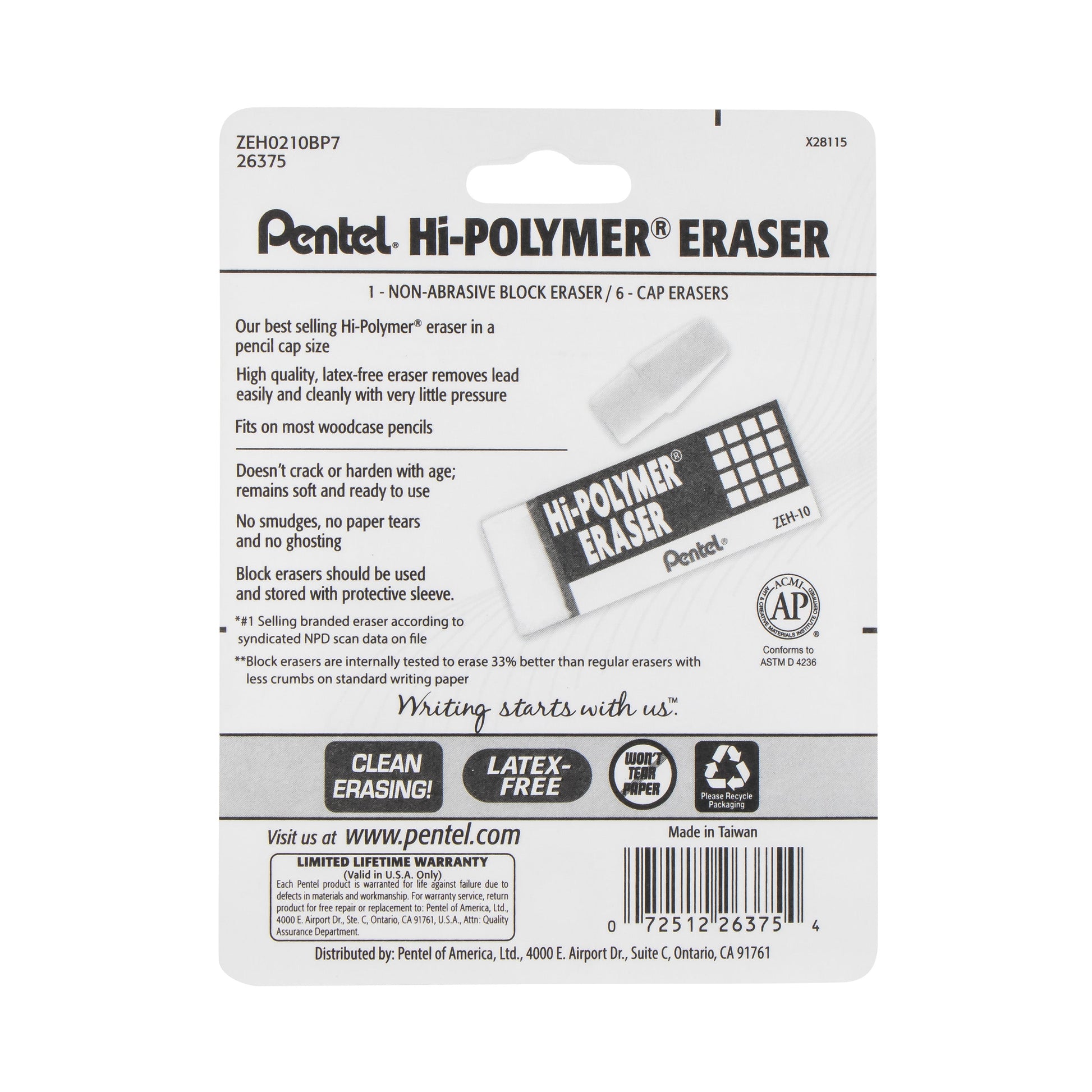 - Our best selling Hi-Polymer® eraser now in a pencil cap size